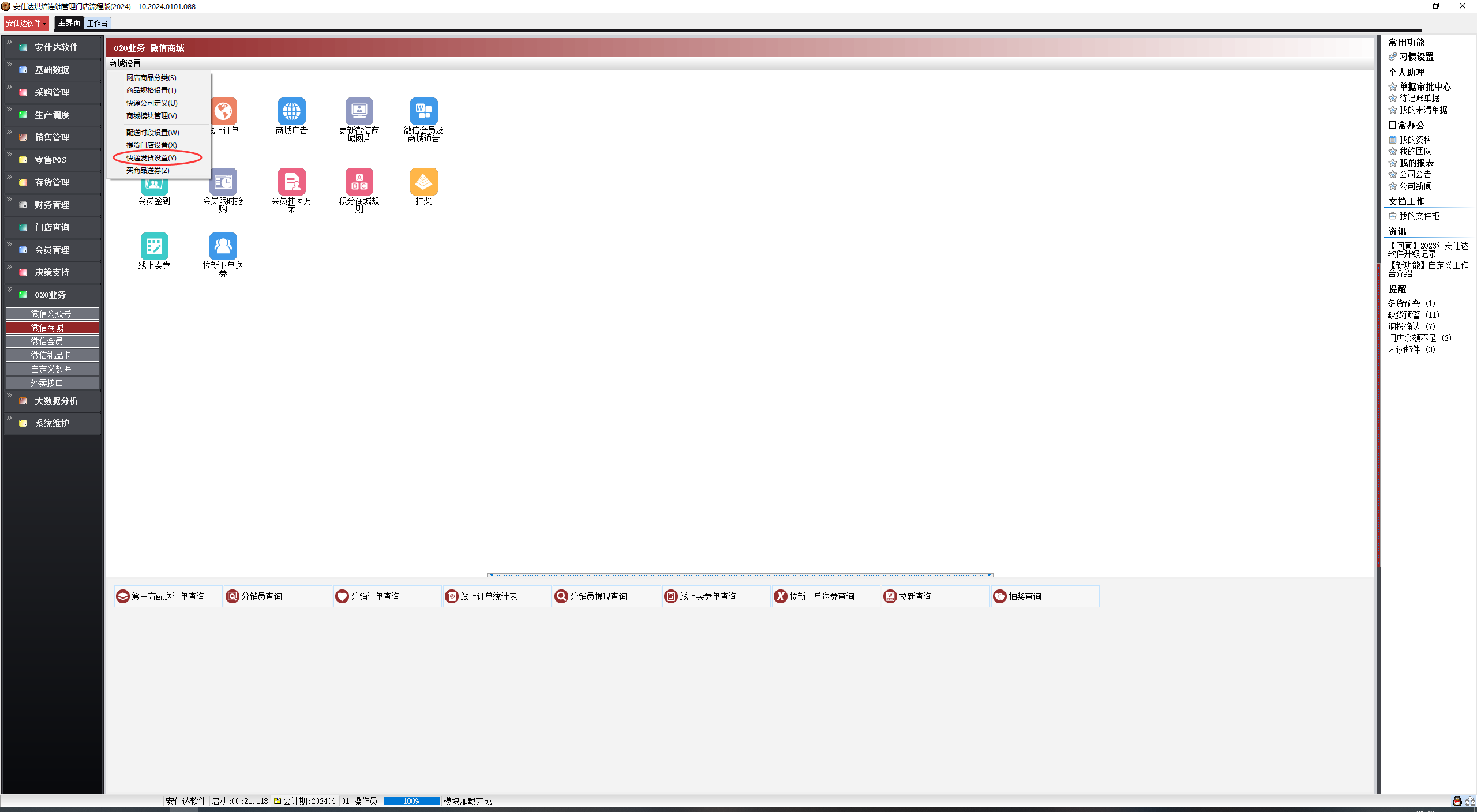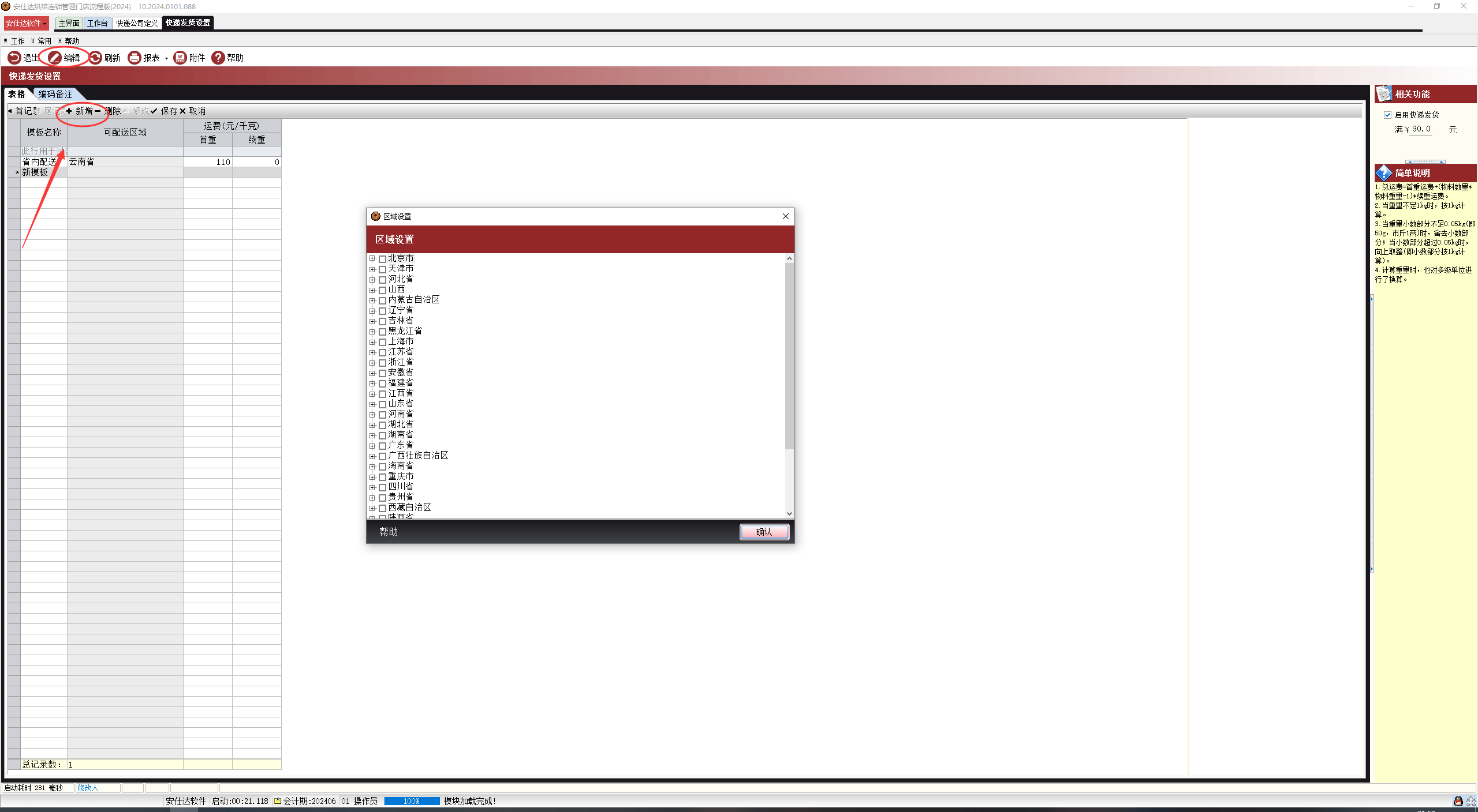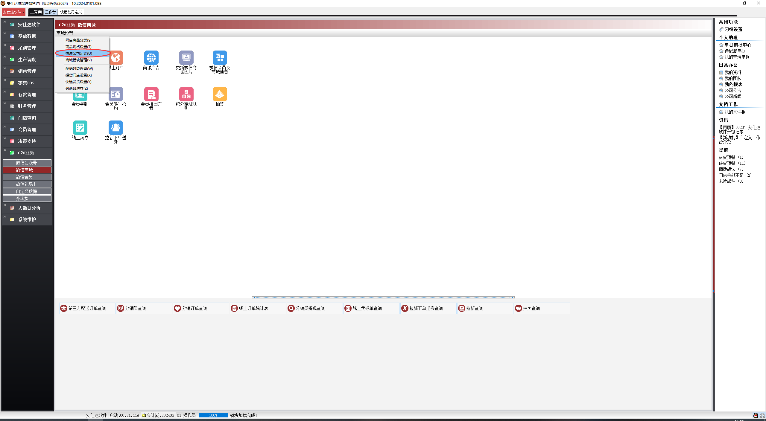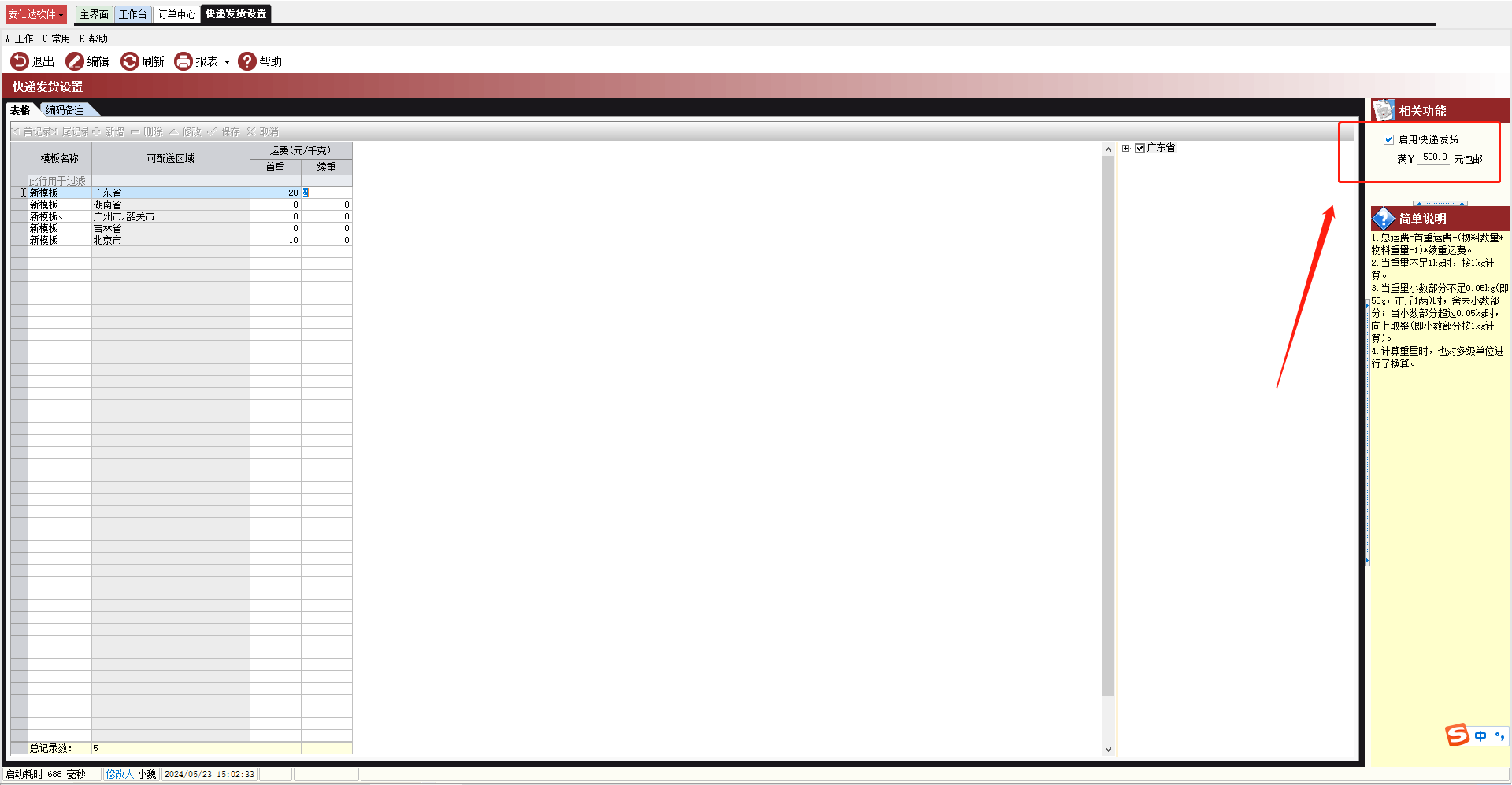 O2O业务 — 微信商城 — 商城设置 — 快递发货设置