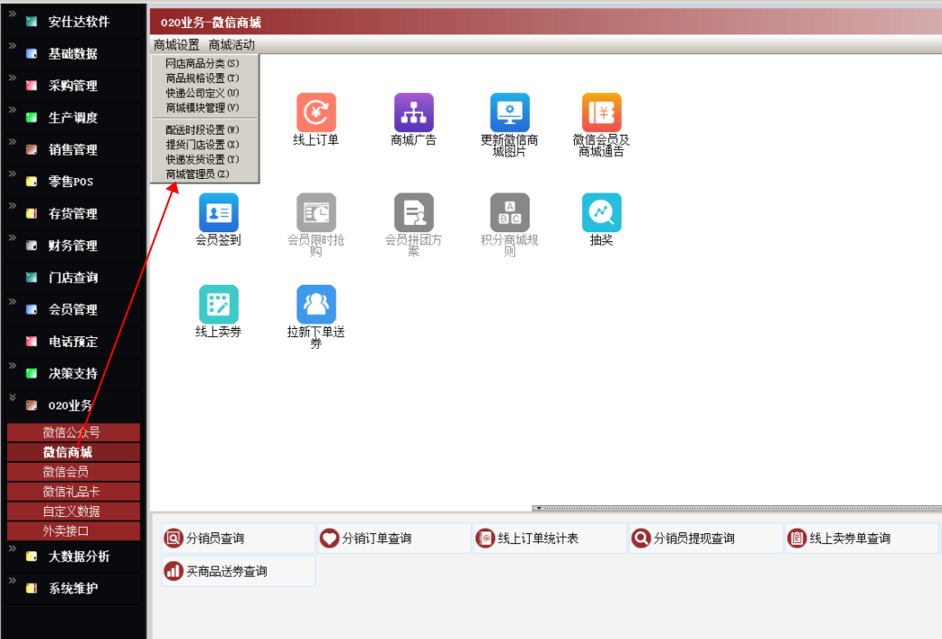 路径:020业务-微信商城-商城设置-商城管理员