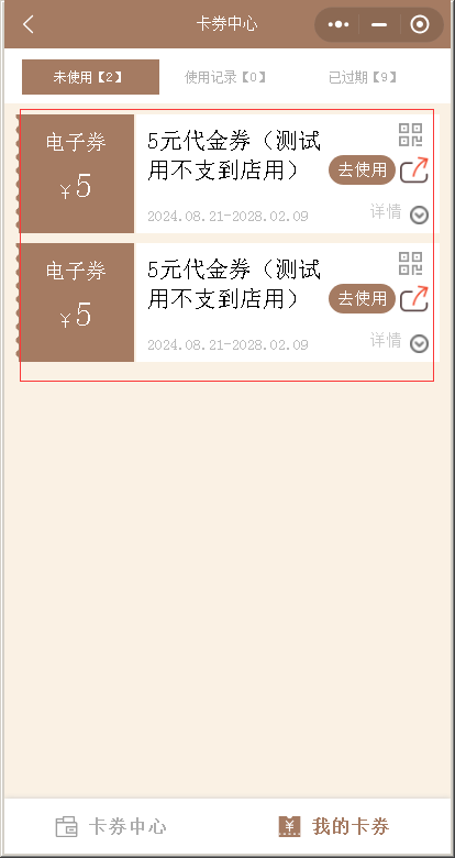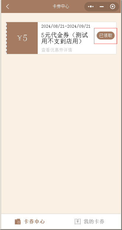 领取后再我的卡券显示