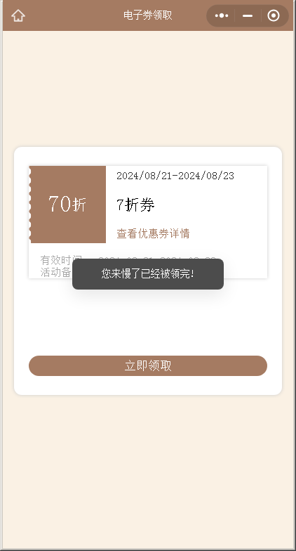 投放链接,电子券已领完提示