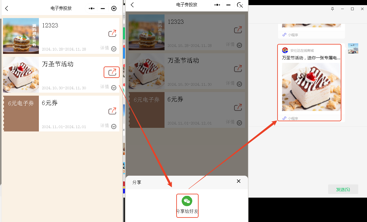 用于小程序电子券投放活动,方便管理员将券投放到客户群