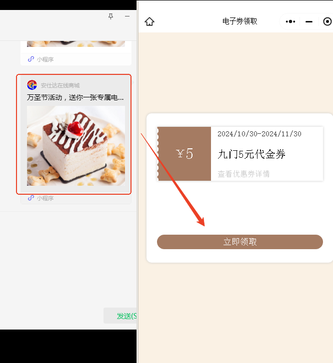 通过投放链接,领取进行中电子券