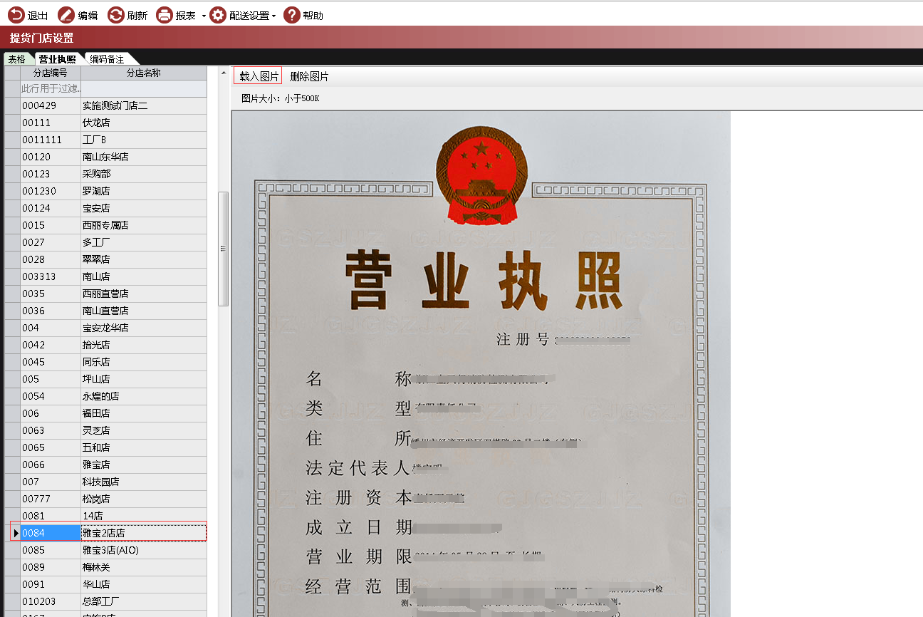 载入图片:选择门店,点击该按钮,选择电脑中图片
