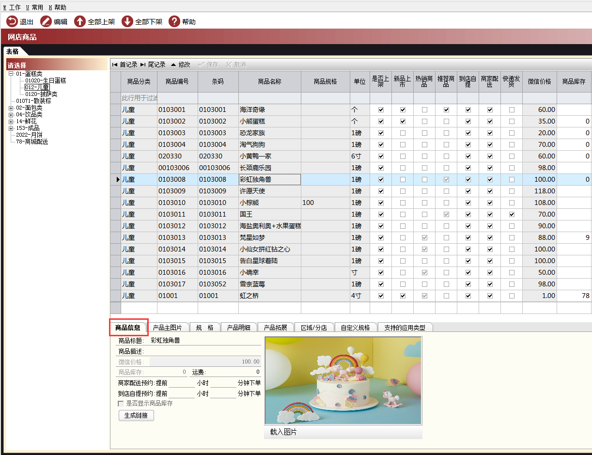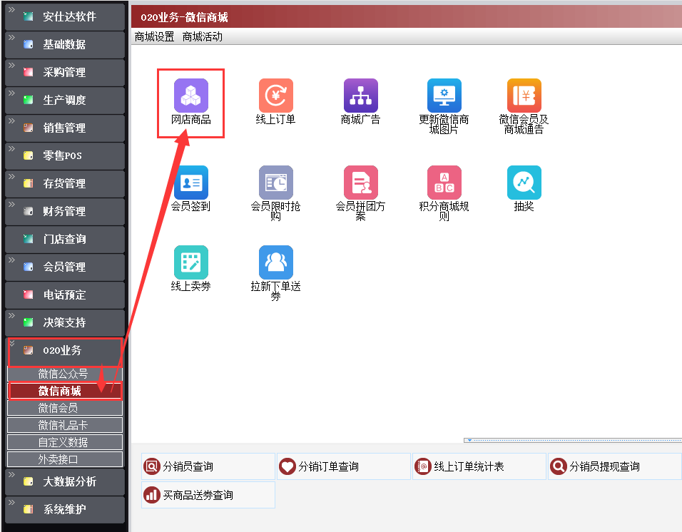 路径:【O2O业务】→【微信商城】→【网店商品】