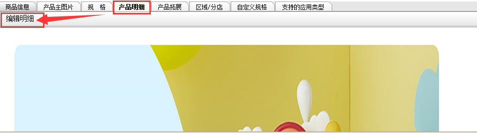 产品明细:用于编辑商品详情,在商品详情界面显示