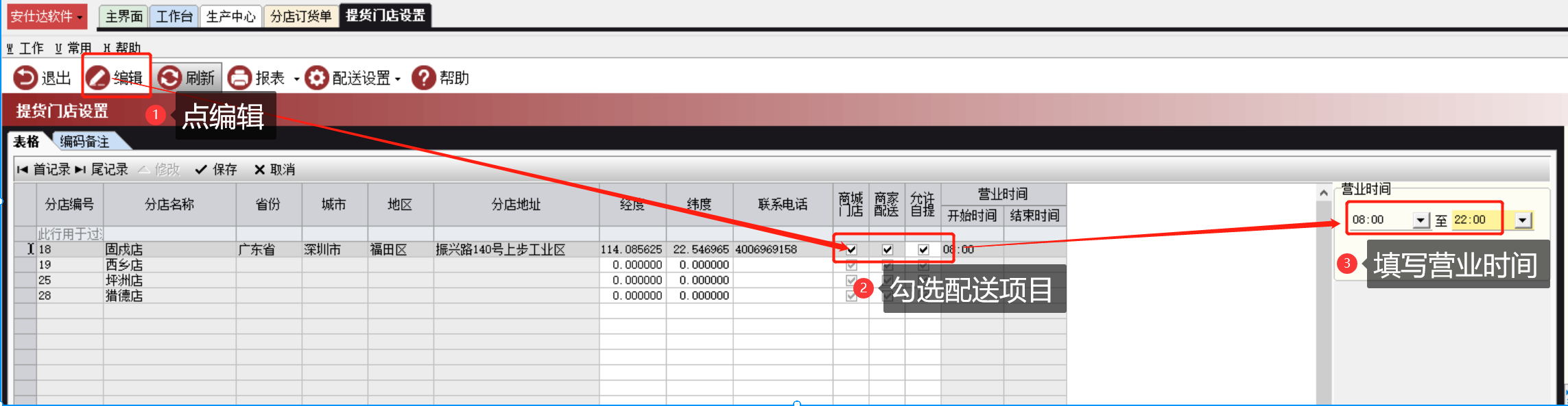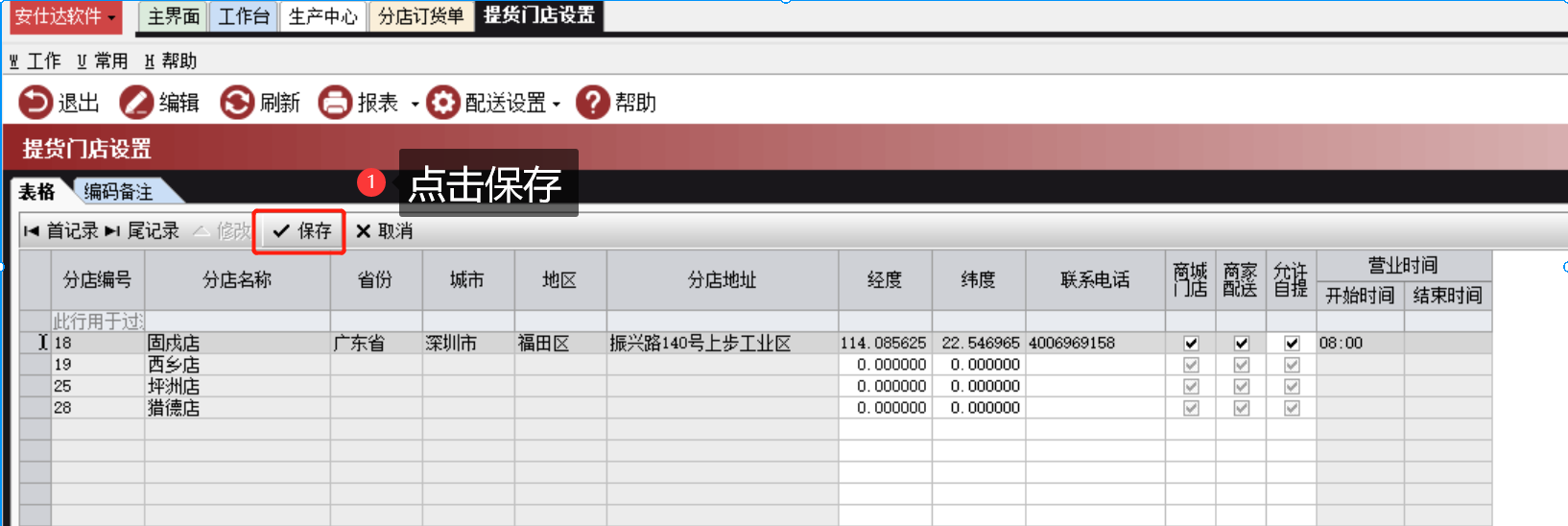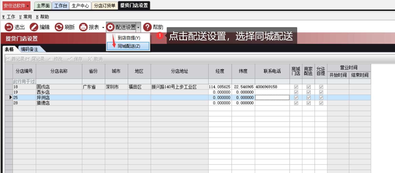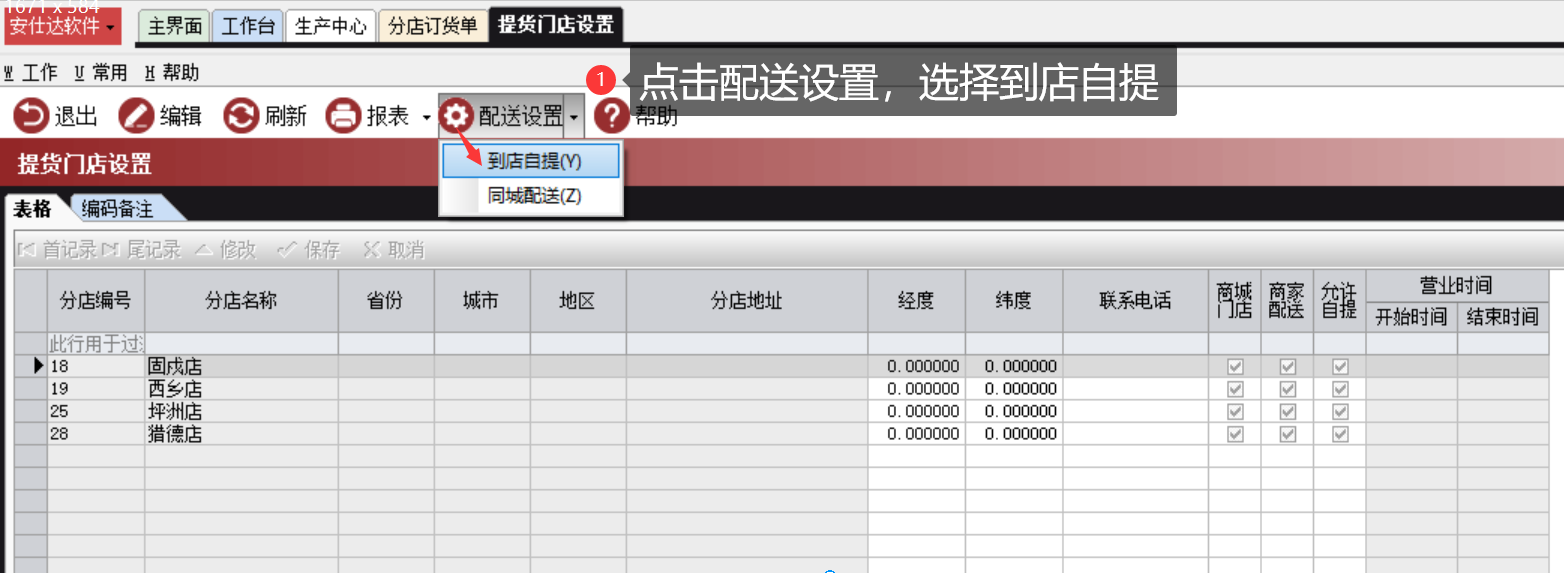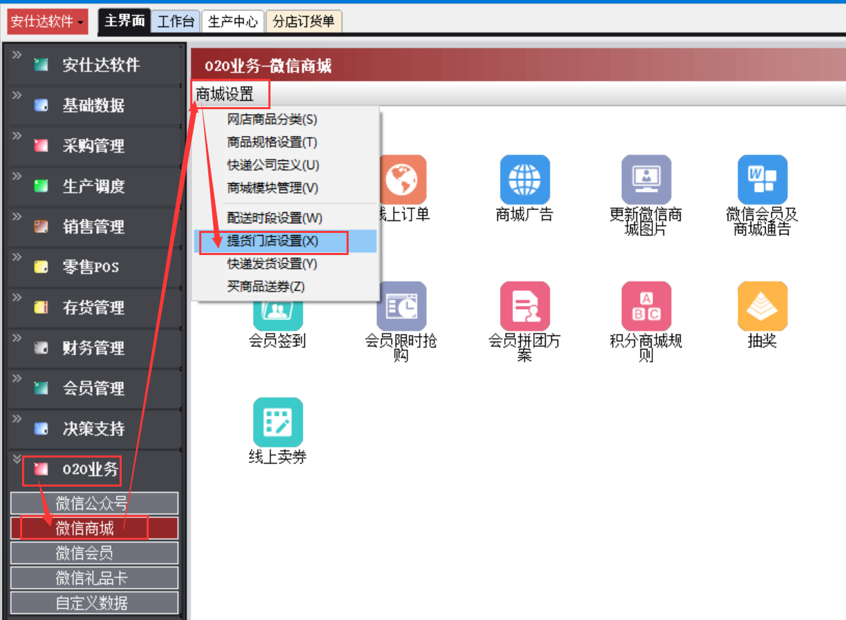 O2O业务-->微信商城-->商城设置-->提货门店设置