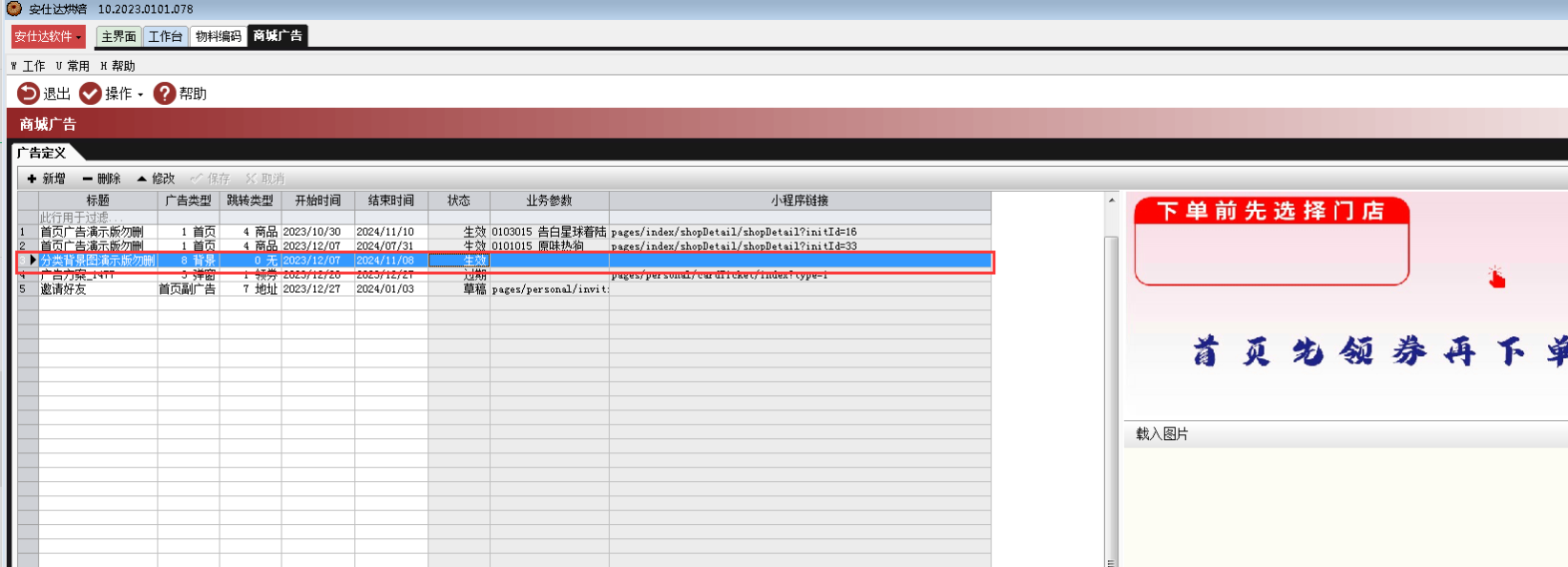 所有添加完图片,需要点击【更新微信商城图片】操作,将图片上传到小程序上。