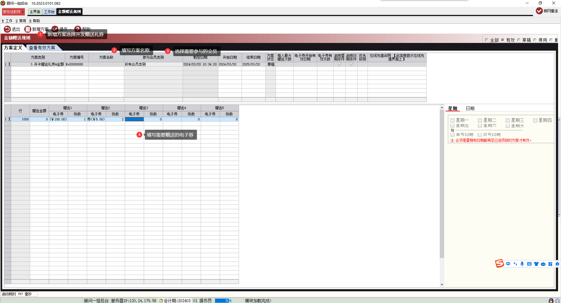 o2o业务—微信会员—线上充值设置—金额赠送规则