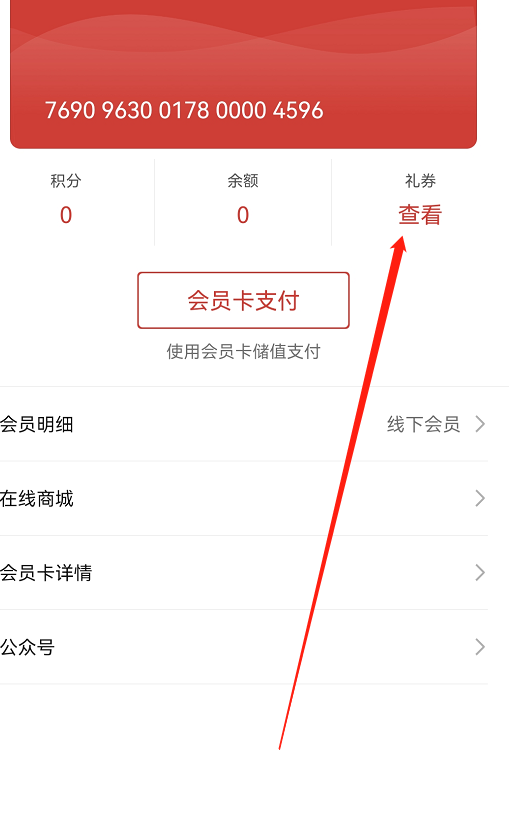 领取完会员卡之后打开卡包能看到赠送的电子券