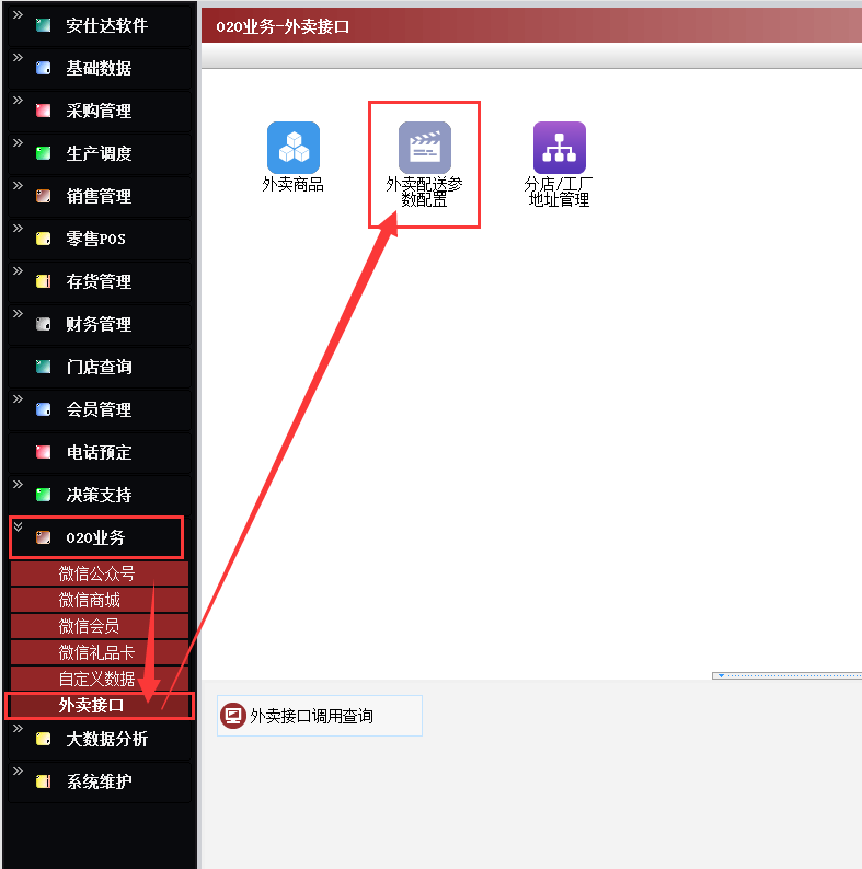 【O2O业务】→【外卖接口】→【外卖配送参数配置】