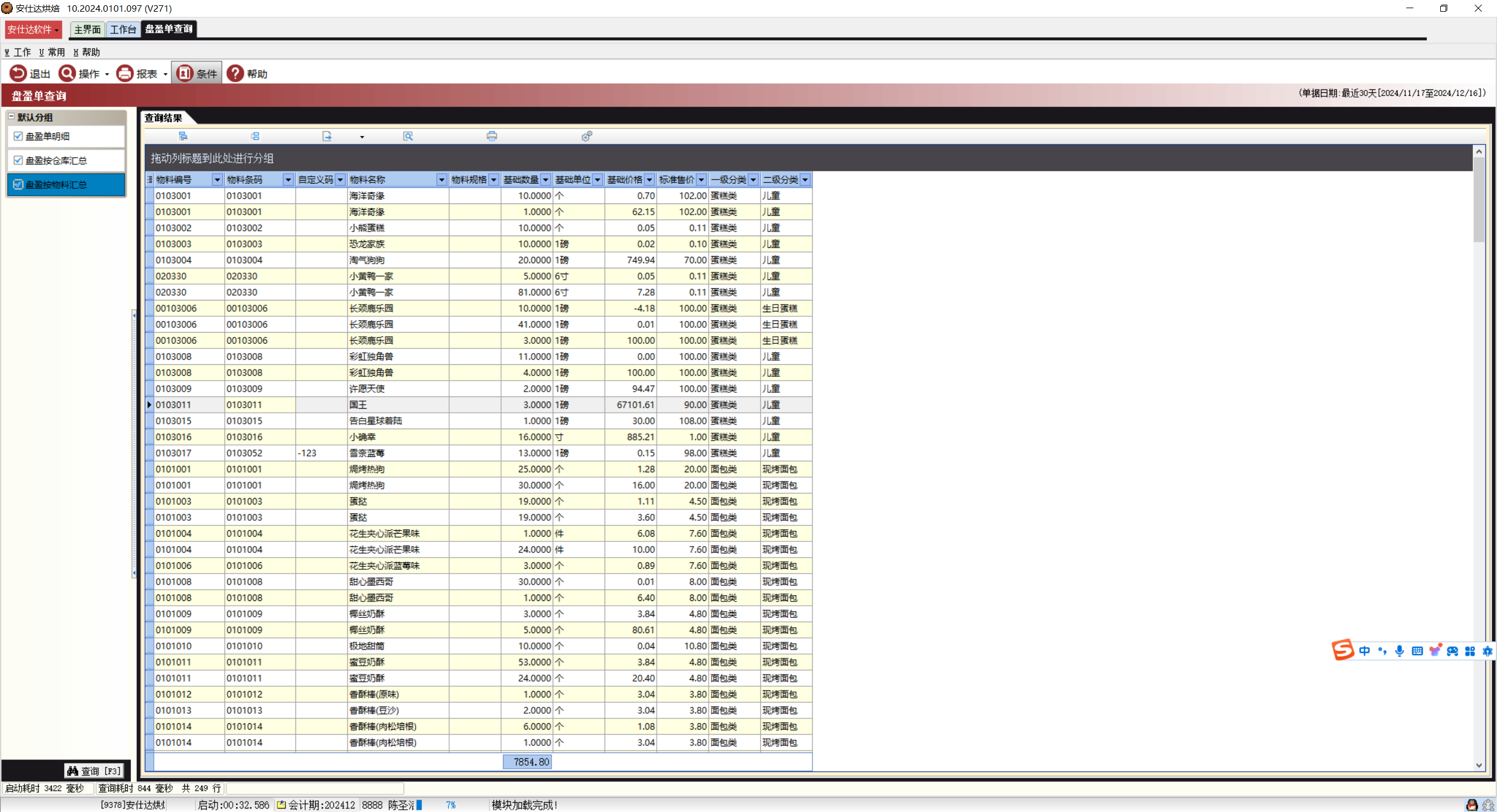 存货管理-库存业务-盘盈单查询-盘盈按物料汇总