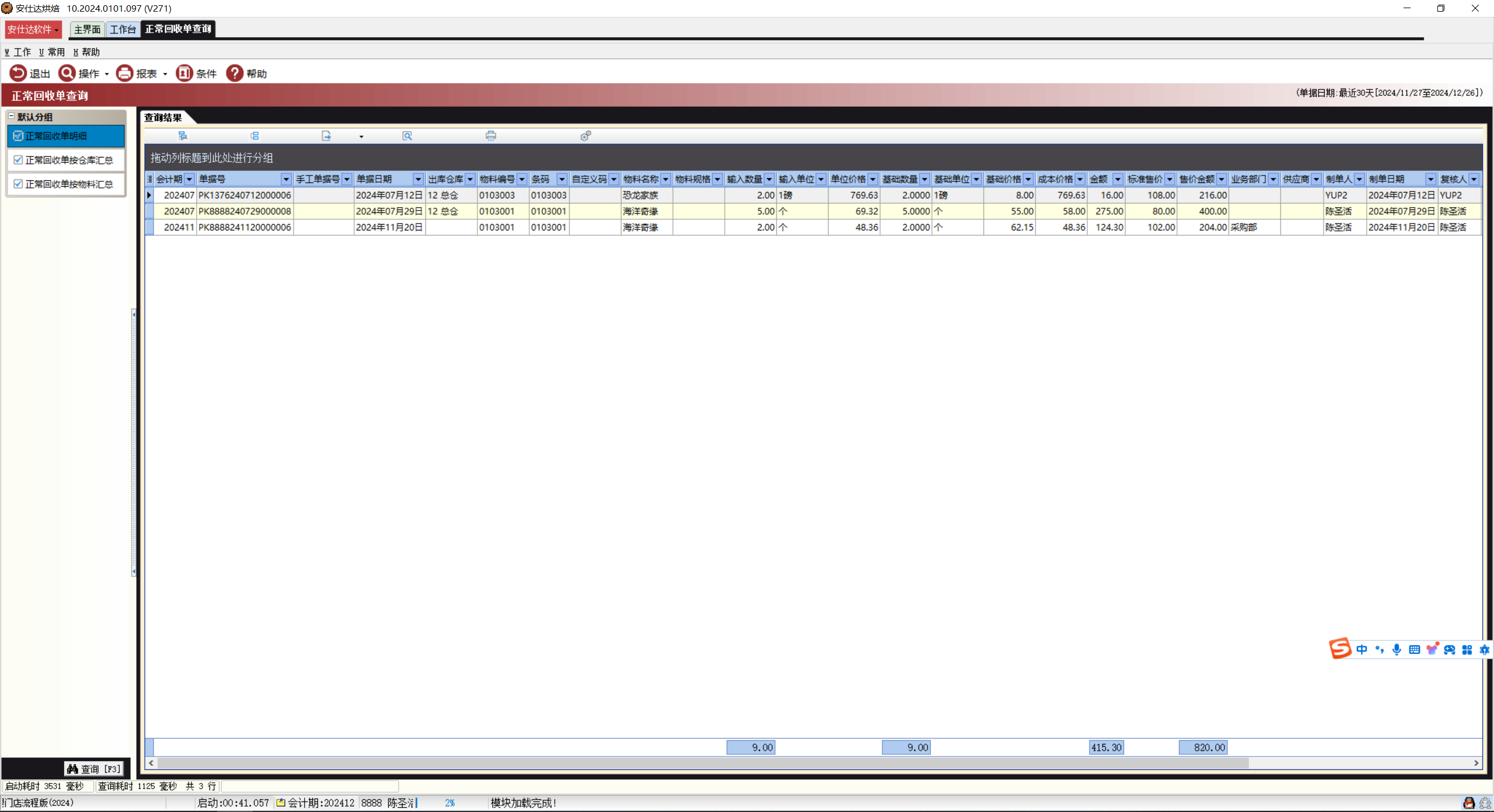 存货管理-库存业务-正常回收单查询-正常回收单明细