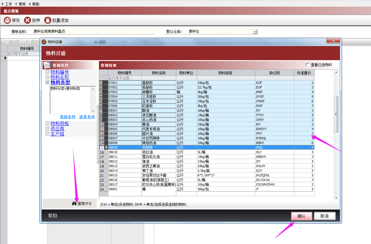 然后查询出需要添加到模板里面的产品,产品添加完成后,最后点击保存