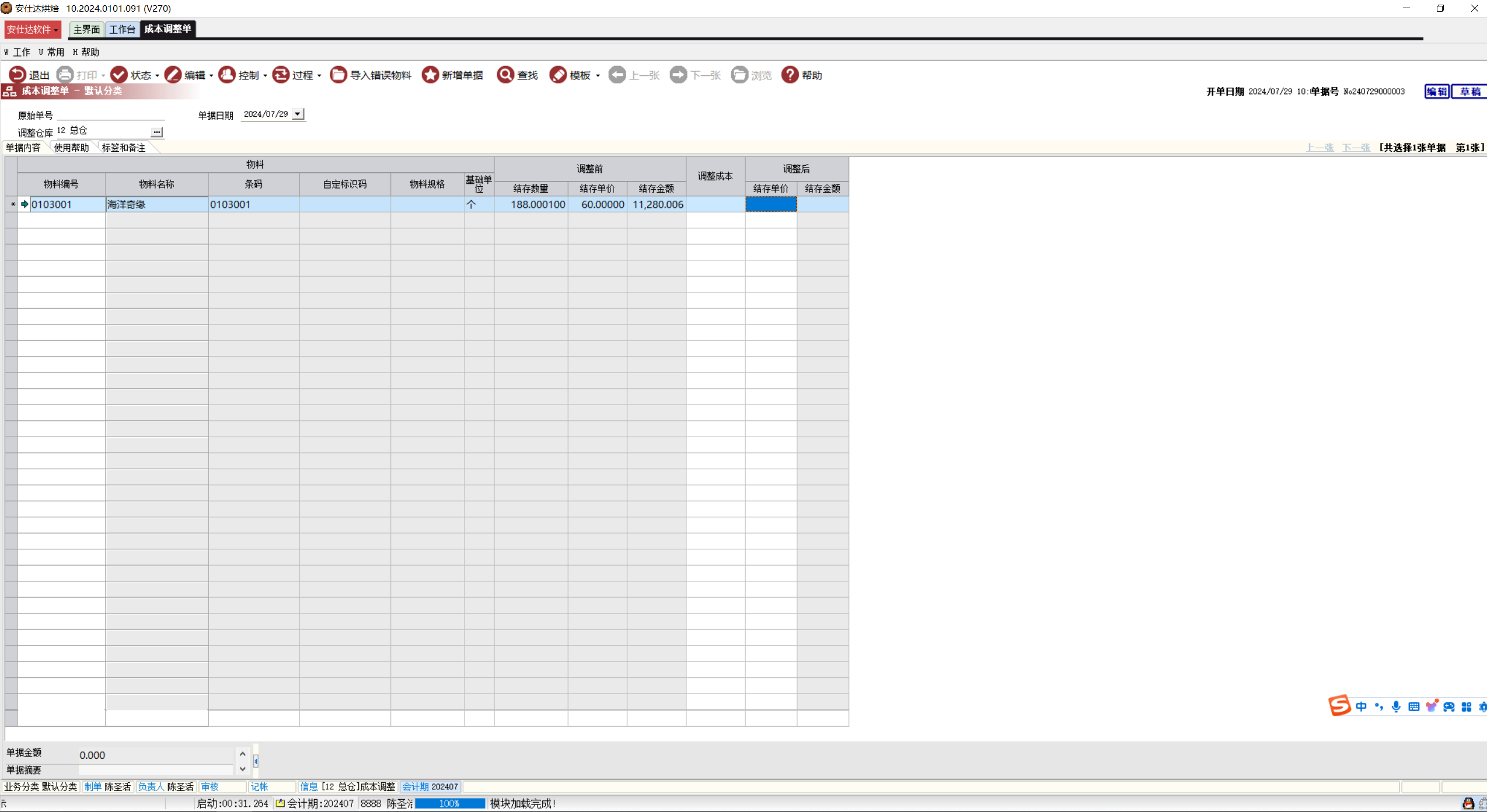 成本调整单用于修改商品的结存成本,通过成本调整单,企业可以对库存金额进行直接调整,包括调差或存货成本转移,且这种调整不涉及商品数量的变化。这有助于企业在不改变库存数量的前提下,对成本进行精细化管理。
