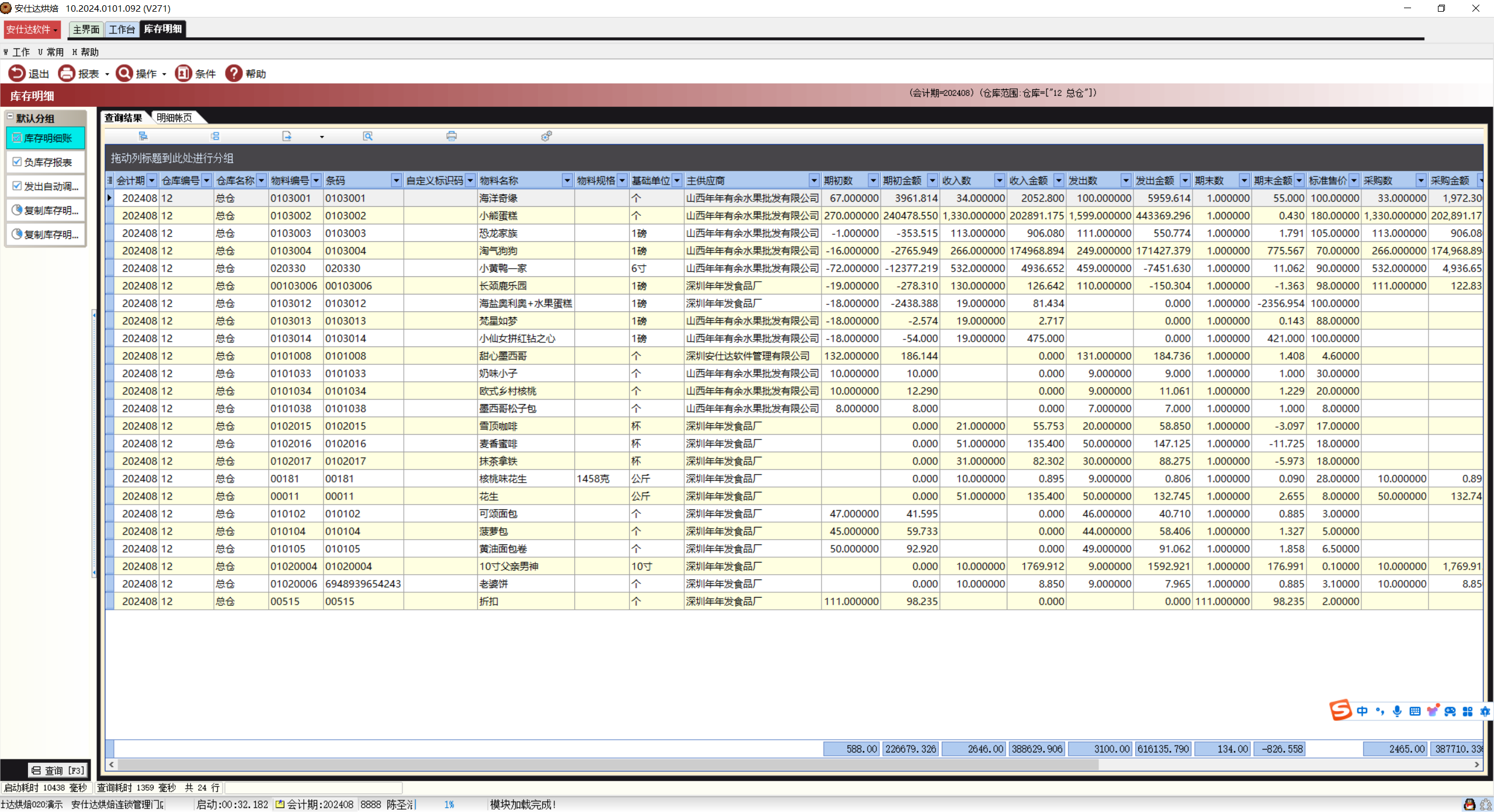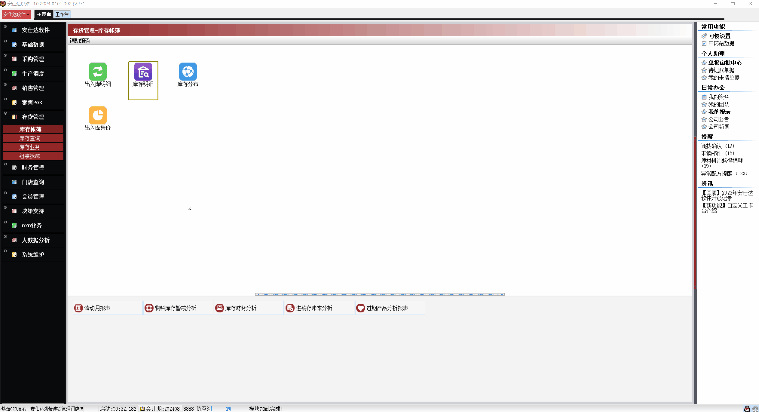 用于查询仓库的物料库存情况,同时支持查看相关明细
