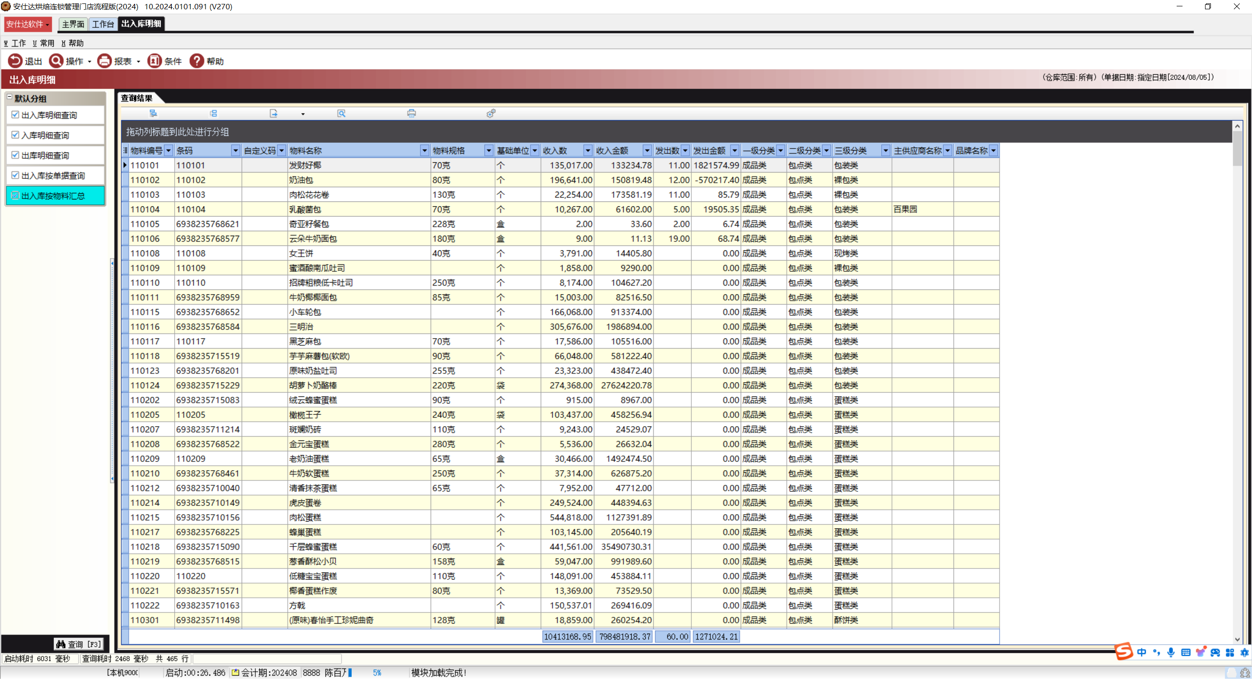 存货管理-库存账簿-出入库明细-出入库按物料汇总