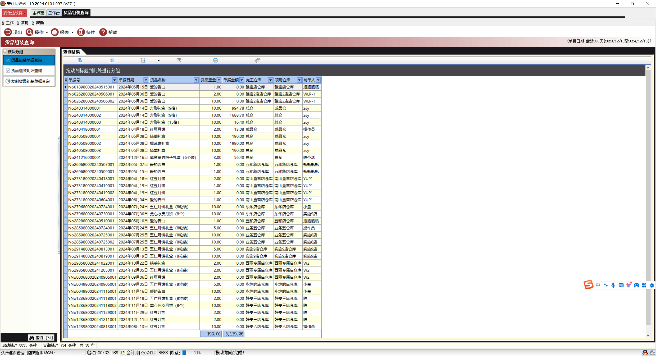 存货管理-组装拆卸-货品组装查询-货品组装单据查询