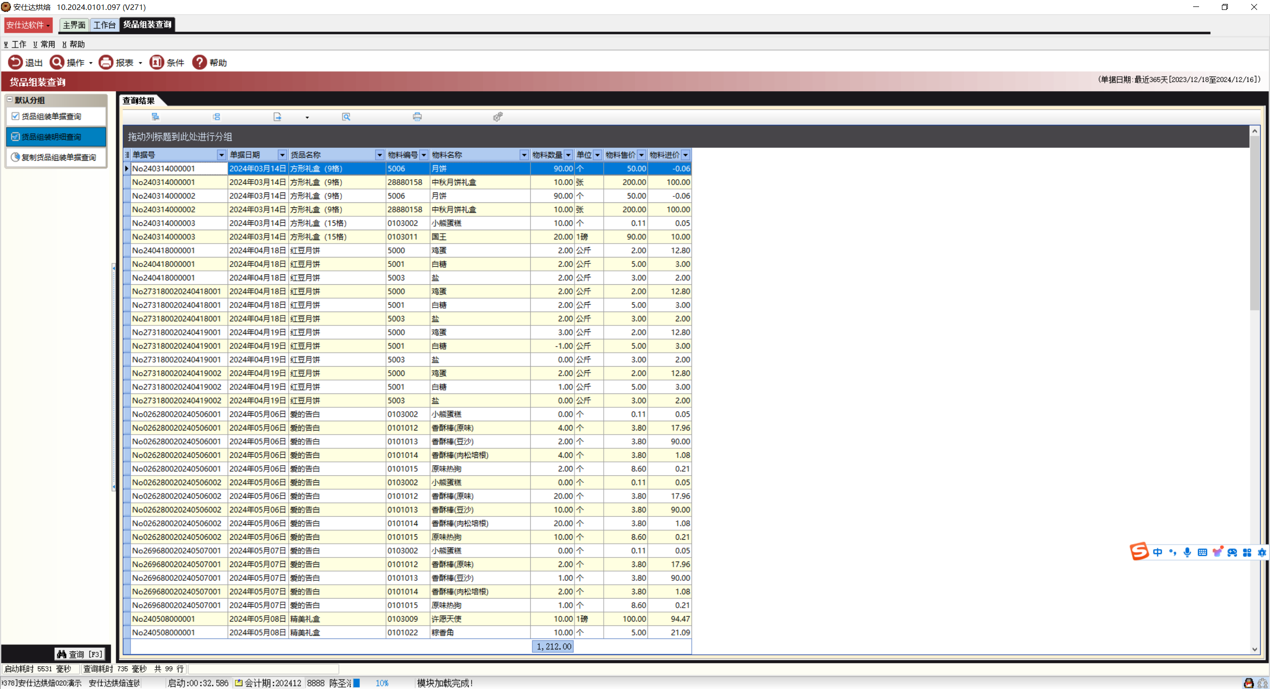 存货管理-组装拆卸-货品组装查询-货品组装明细查询
