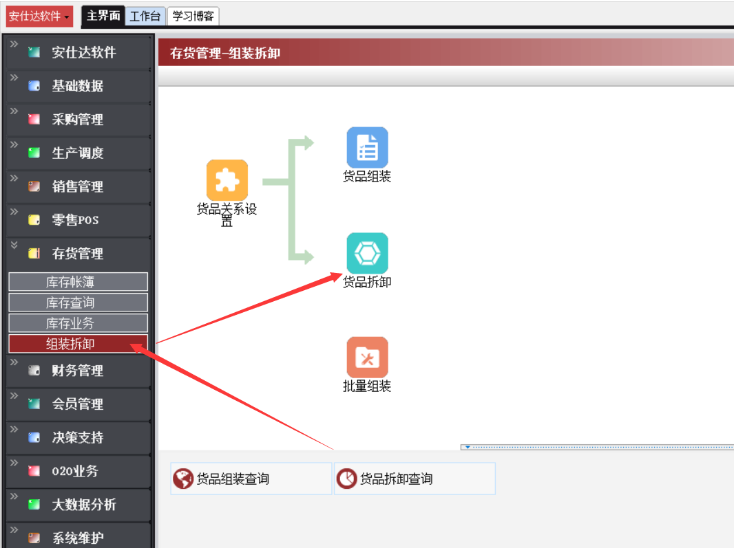 【存货管理】→【组装拆卸】→【货品拆卸】