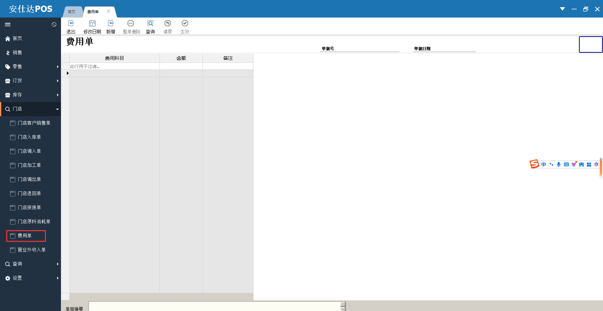 前台门店费用单