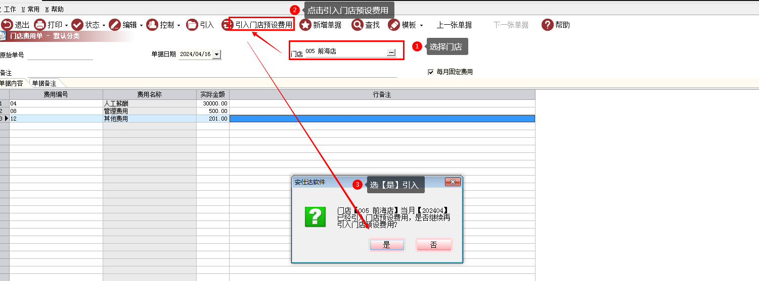 后台:门店费用单
