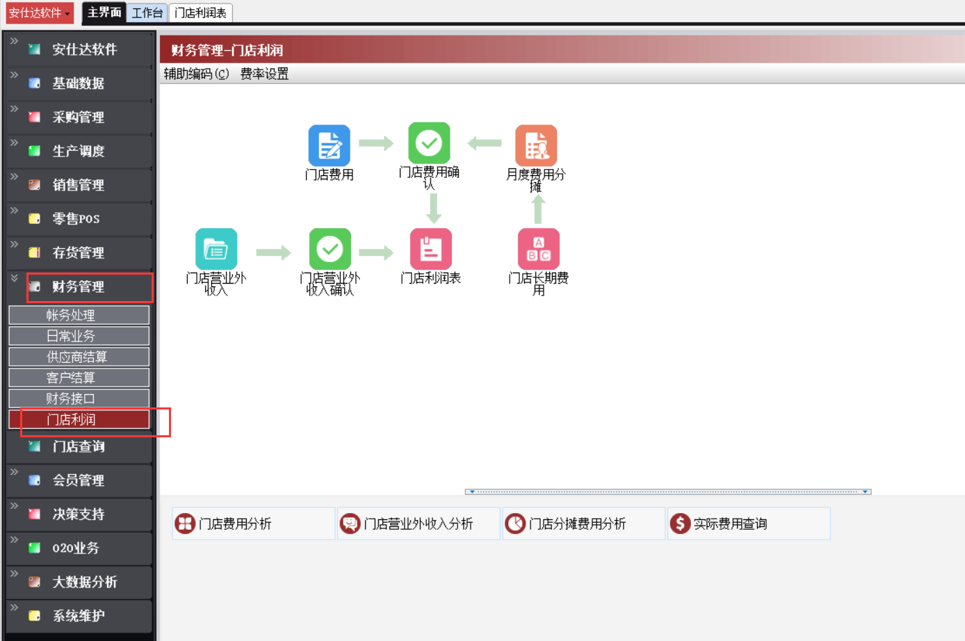 10、 门店费用: 统计当前门店当前月份内门店费用单费用汇总;