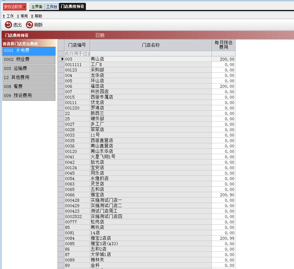 用于定义门店营运费用项、营业外收入项、门店预设费用