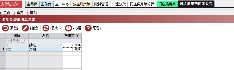 用于设置收款方式、券、退回类型费率,便于计算收款方式费用
