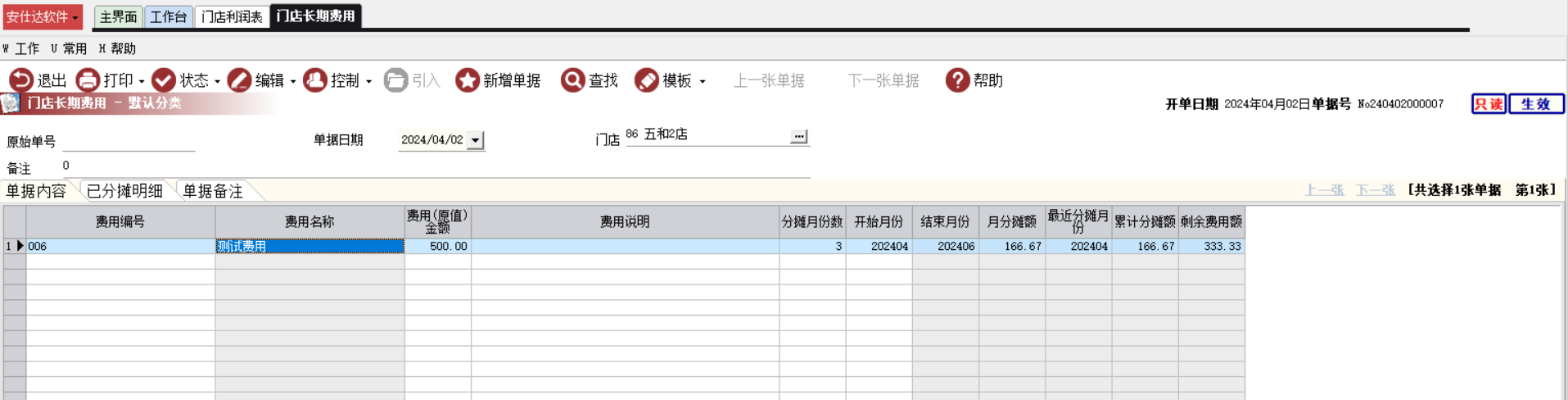 单次费用项目用于长期使用,需要分摊到多个月的费用单据