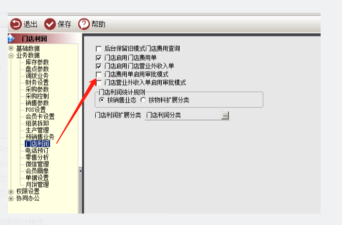 需要使用门店费用确认。用01进入特点之后勾选“”门店费用单启用审批模式“”