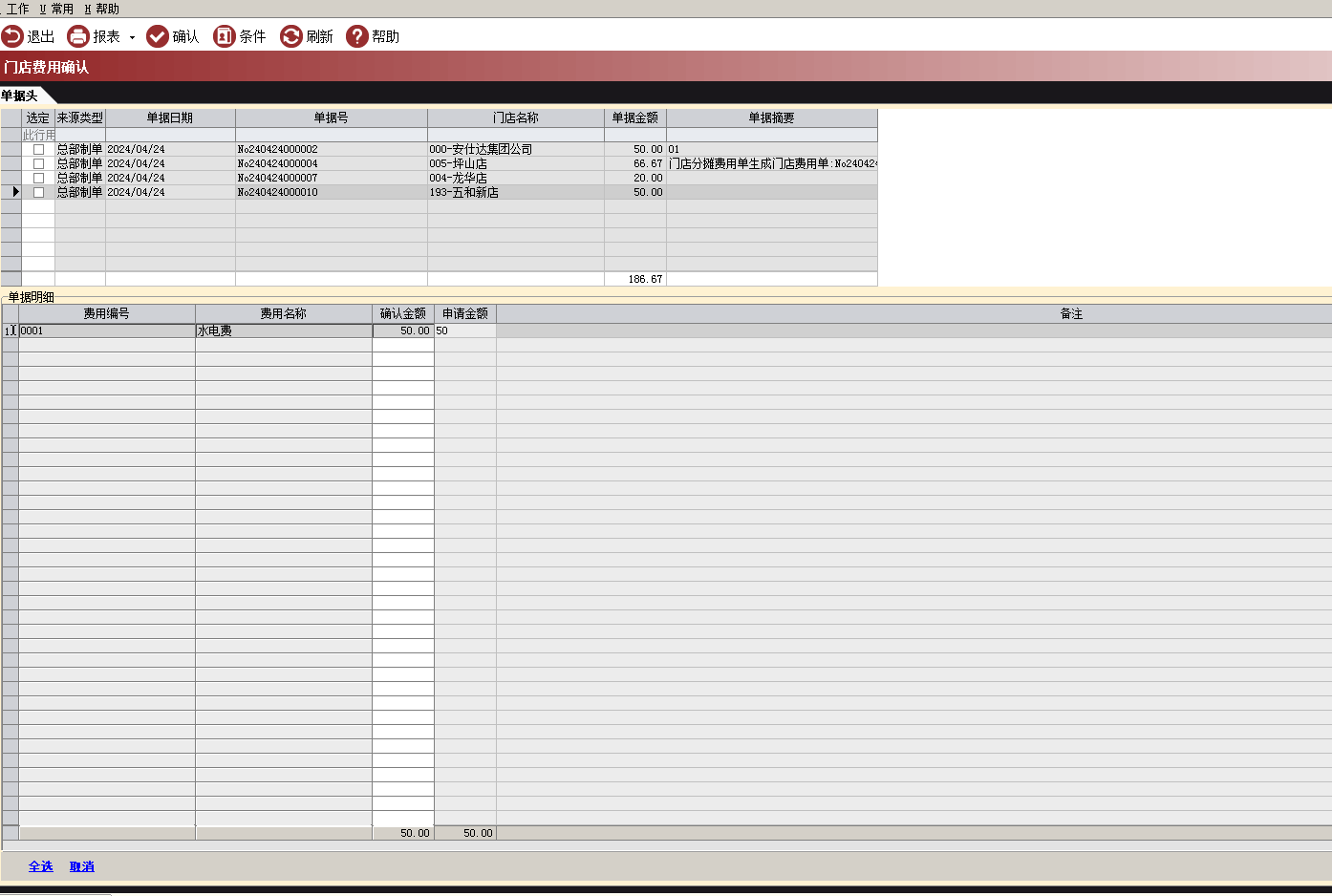 门店做费用单,必须要后台费用确认。后台确认后生成一张新的门店费用单