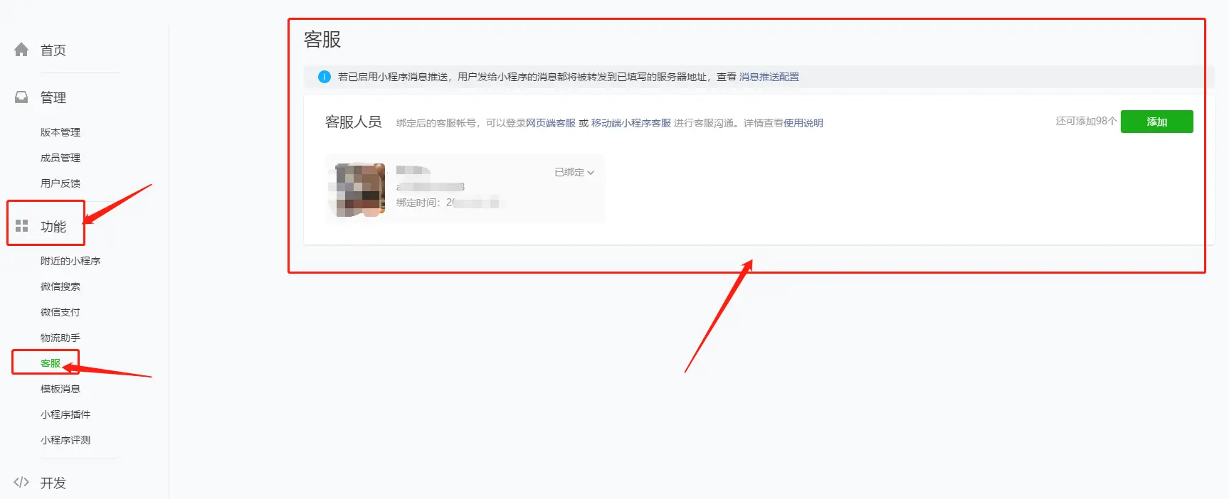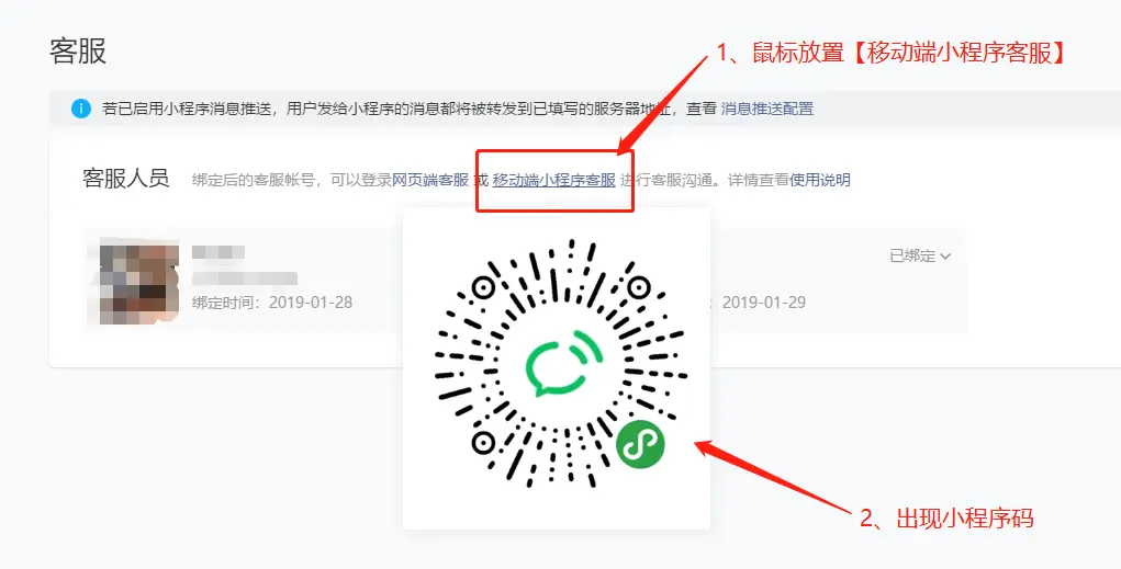(1)绑定设置小程序客服人员