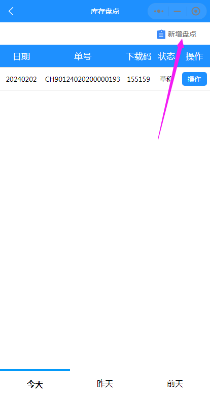 (1)盘点小程序操作①打开盘点小程序,登陆用户账号,点击新增盘点
