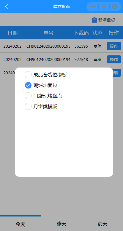 (2)工厂后台盘点导入盘点小程序盘点记录