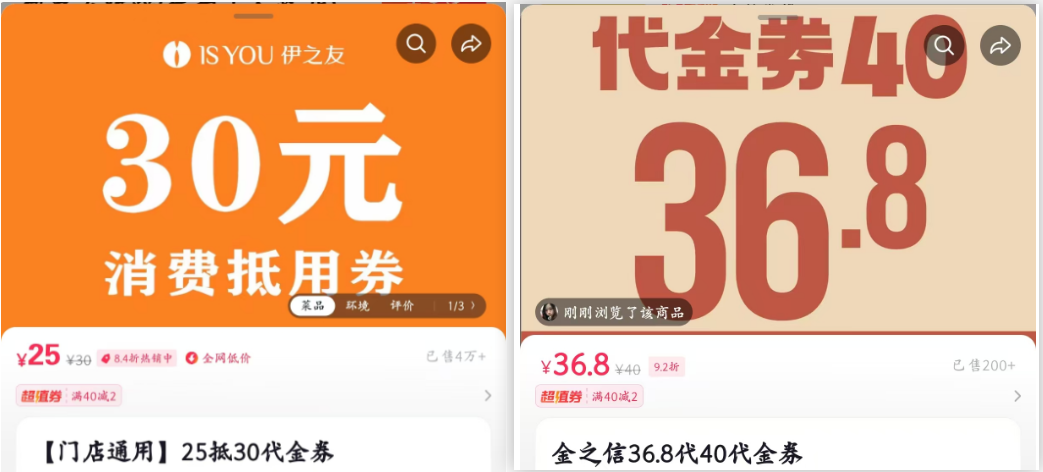 金额券可以是大部分是不限制产品,只是用于满减,也可以是用于充值(这种就比较少见)
